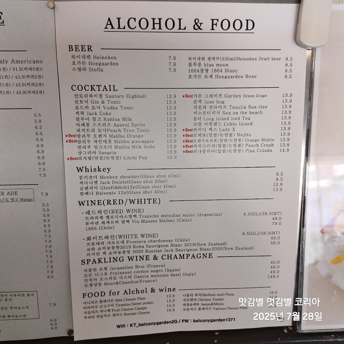Balcony Garden(발코니가든) Menu